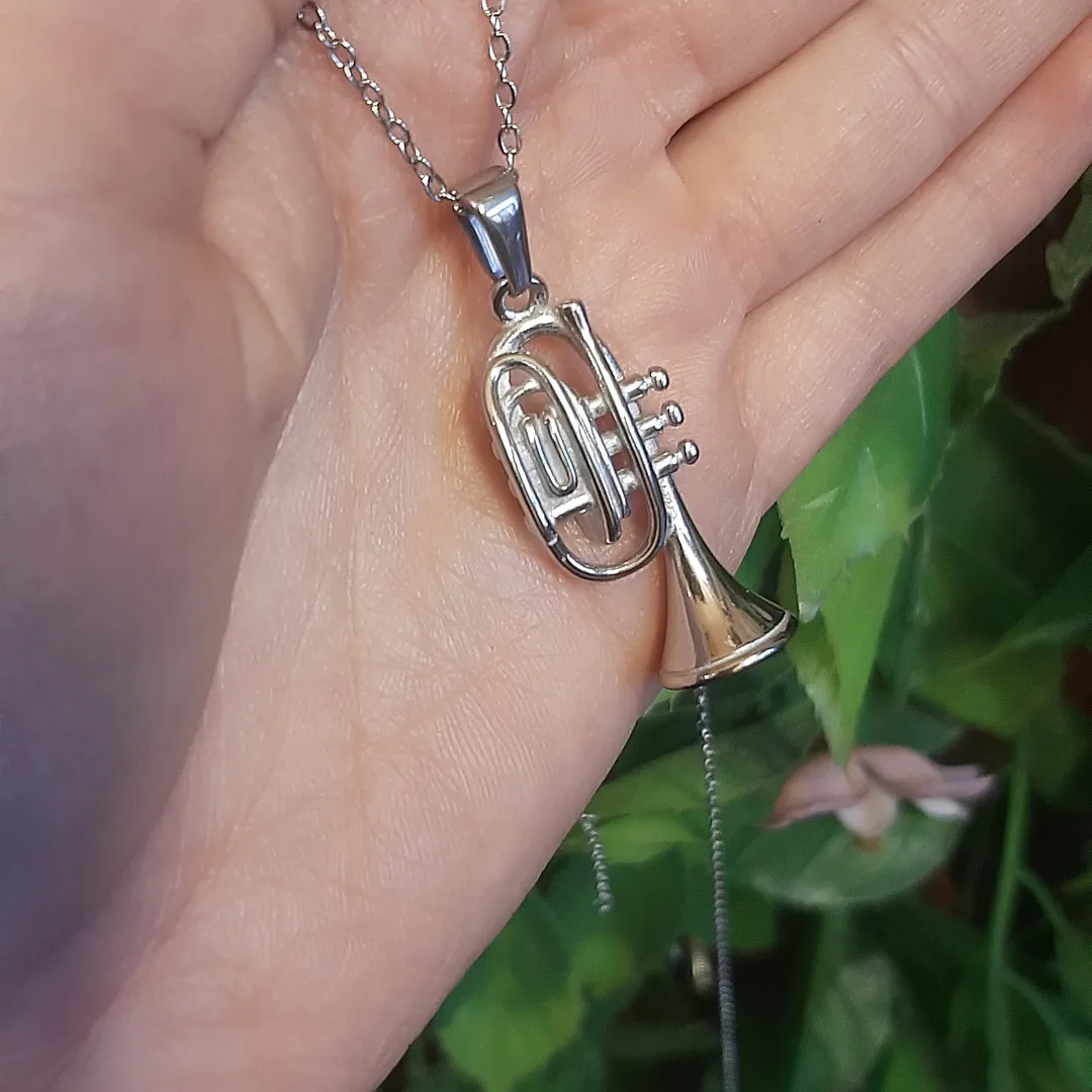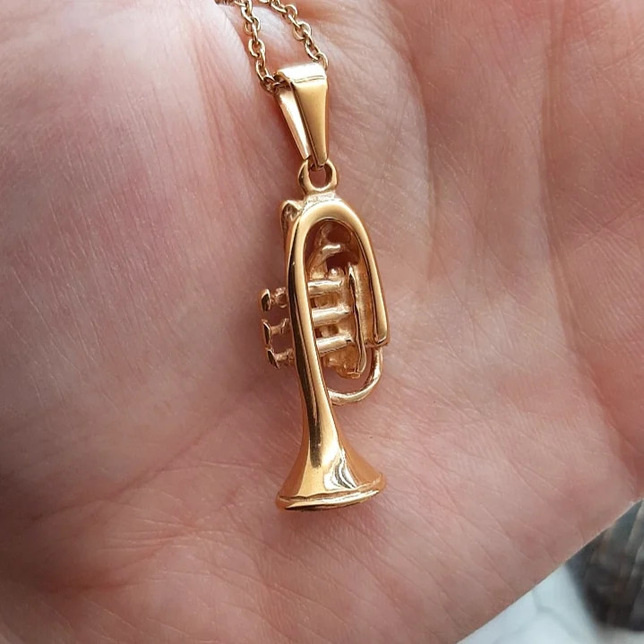 cadena de 45 cm en acero con dije en forma de trompeta en 3D